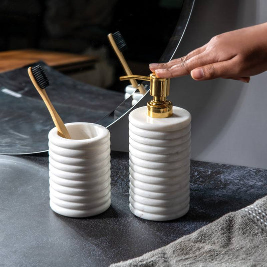 Give your bathroom modern and soothing vibes with our collection of handcrafted minimalist marble bathroom set. Marble bathroom sets are the new and modern way of organizing your bathroom. The premium bathroom sets are made from natural marble stone and handcrafted by the most talented craftsmen to ensure a perfect finish.
